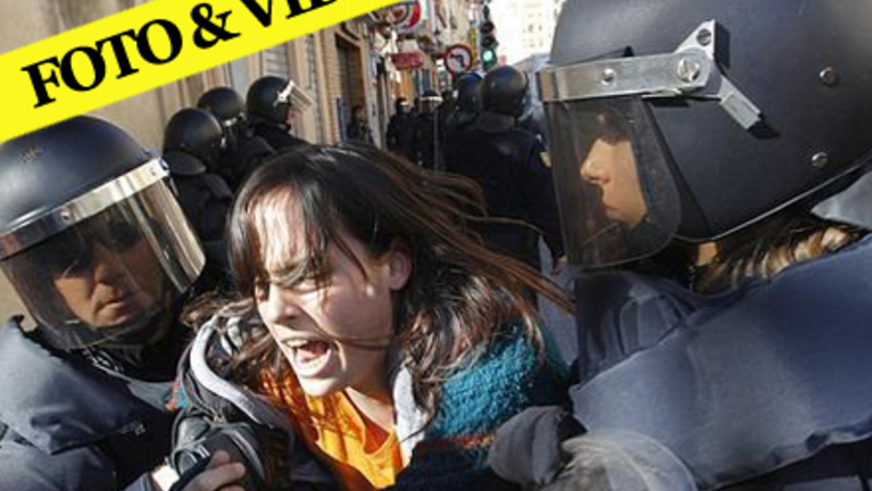 I Valencia kom det til sammenstød mellem unge demonstranter og ordensmagten. Demonstrationerne i Valencia var specifikt rettet mod nedskæringer inden for sygehus- og undervisningssektoren. De unge råbte slagord mod den valencianske regering, og krævede ”flere investeringer i undervisningssektoren og færre penge til finansiering af Formel 1 -løb”. Flere betjente kom til skade fredag, og flere end 12 unge blev varetægtsfængslet.