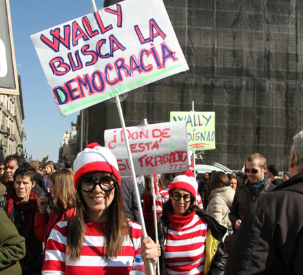 Der var nogle der havde klædt sig ud som Holger fra bøgerne 'Find Holger'. De gik med skilte hvorpå der blandt andet stod: Holger (Wally på spansk) søger demokrati