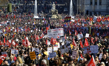 I Madrid protesterede mindst en halv million mennesker, 450.000 i Barcelona, 80.000 i Valencia, 70.000 i Zaragoza og 6.000 i Málaga.