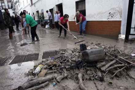 Værst ramt er Cañete de las Torres Kommune. Her har indbyggerne været nødt til tømme husene og stille deres indbo ud på gaden for at fjerne det mudder og jord, som trængte ind, da vandet styrtede ned gennem gaderne. Et stort antal biler er også blevet væltet rundt og ødelagt af vandmasserne.