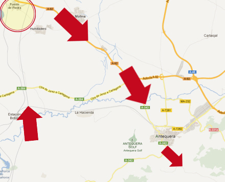 Dagen efter skal du bare køre gennem kløften og til højre, når vejen ender i et t-kryds. Og så er det ellers bare ligeud. Der er en lille vej gennem bjergene – tag den! Det er en enormt flot tur, og på et tidspunkt kan du komme mod Humilladero, der ligger lige ved siden af Fuente de Piedra.