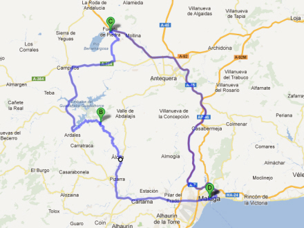 Derfra hedder det bare mod Antequera ad A 343'eren – har du lidt ekstra tid, er den by bestemt også et besøg værd. Ellers bare fortsæt gennem byen ad landevejen, og pludselig er der et skilt mod El Torcal. Det sidste stykke til Málaga kan du enten tage som smuk bjergkørsel ad den samme landevej, eller du kan vælge at tage det sidste stykke på motorvejen.