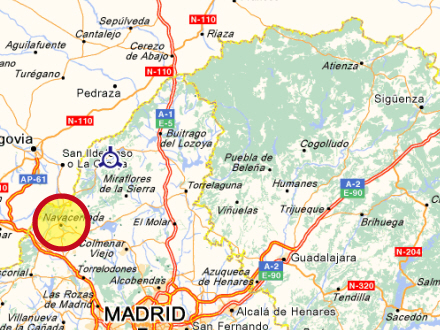 Strækningen fra Navacerrade til Madrid er 51 km og tager omkring tre kvarter i bil.