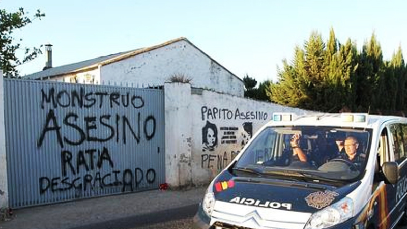 Ved ankomsten til Las Quemadillas blev Bretón mødt af graffiti på porten til ejendommen, med ordlyden: ”Monster morder, rotte-svin” og på muren: ”Morder-far”.