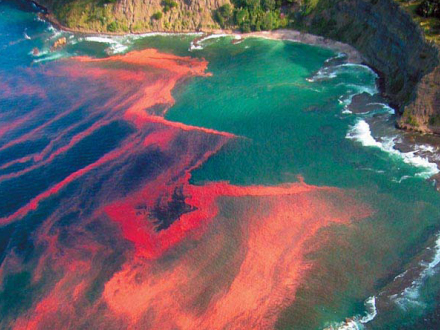 Kysten ligner Det Røde Hav, men det er faktisk giftige røde alger, som forgifter muslingefarmene, og tvinger dem til at lukke ned.