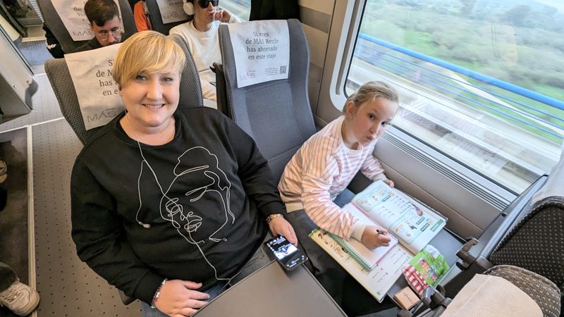 MARTS 2024: Her sidder jeg med min datter og barnebarn i højhastighedstoget fra Málaga til Madrid.