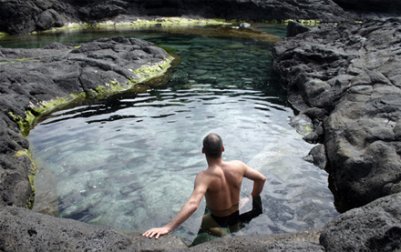 Charco Azul på den lille kanariske ø La Palma. Her findes flere ”pools” til alle aldre: en stor pool til ”voksne”, en børnepool og ”dame-pool”, med naturligt havvand og små vandfald.
