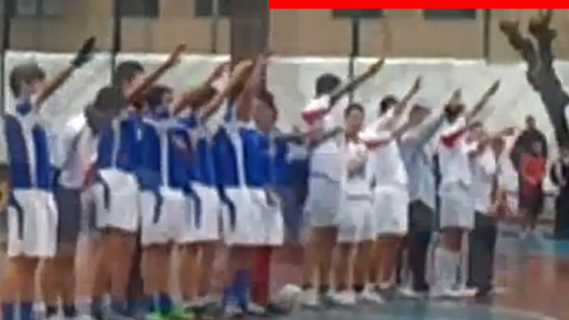 En videooptagelse af en gruppe skoleelever, der laver en nazi-hilsen inden en sportskamp, har forarget bredt. Episoden foregik på Nuestra Seño...