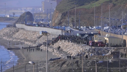 De 400 immigranter havde forsøgt at forcere grænsen til Spanien. En gruppe havde prøvet at komme i land ved at dykke og svømme over, mens en anden valgte at gå over ved El Tarajal.