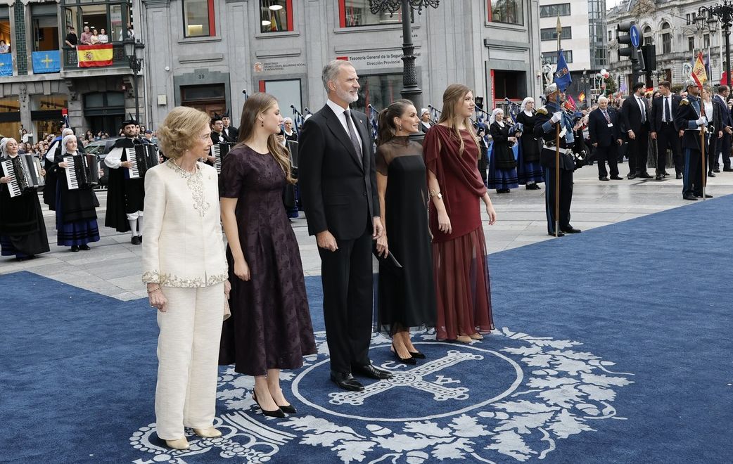 Kongefamilien ankommer til pladsen foran Teatro Campoamor i den regionale hovedstad Oviedo