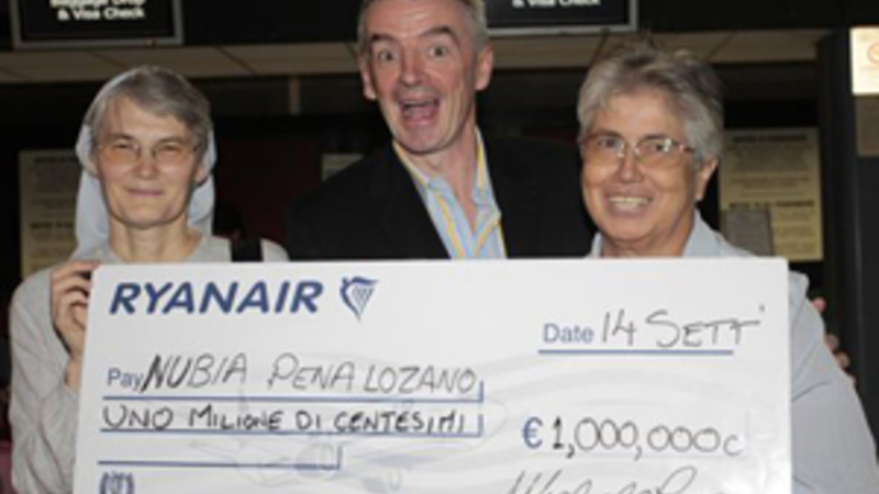 Ryanair havde udlovet en præmie på en million cents – eller 10.000 euro - til passager nummer 100 million på en rute til eller fra Italien.