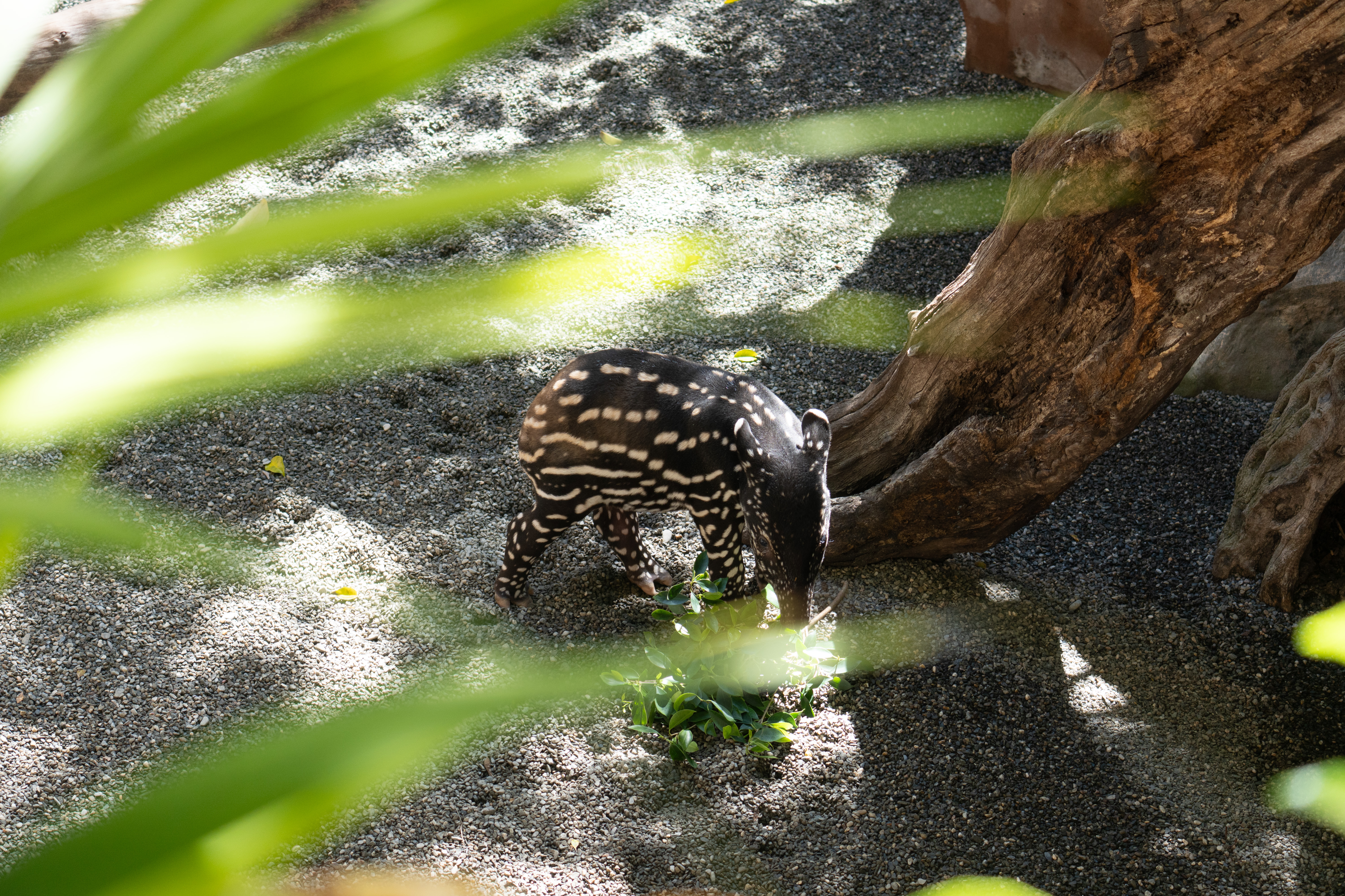 Sjældent øjeblik med tapir-unge, der nu udforsker udendørsområdet.