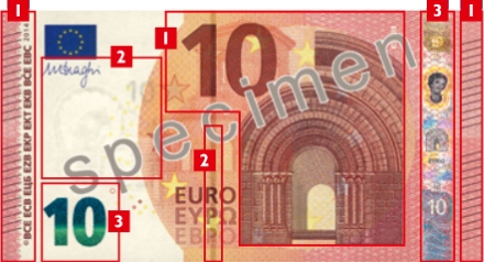 Mens købekraften på den nye 10-euro er uændret, så er det visuelle design ændret, og trykteknikken skal gøre det endnu sværere for falsknere.
