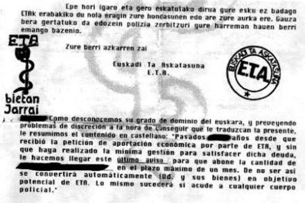 I brevet kræver organisationen indbetaling af den såkaldte revolutionsskat. Der er tale om beløb på mellem 80.000 og 400.000€. Modtagerne er overvejende baskiske erhvervsfolk, politikere og kendte personer i Baskerlandet.
