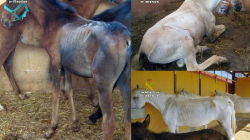 Guardia Civil har anholdt ejeren af en gård i Mula i Murcia for grov vanrøgt af 39 heste, der i blandt flere føl og avlshingste. Hestene var i en så sølle forfatning, at flere måtte aflives.