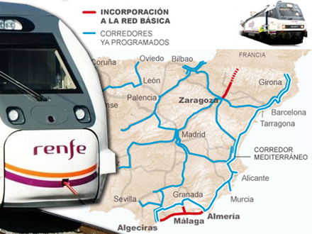 Middelhavsbanen, El Corredor Mediterráneo, som frem for alt skal lette containertrafikken på de spanske landeveje, skal gå fra den franske grænse ned langs den spanske Middelhavskyst til Algeciras, hvorfra der vil være forbindelse til det afrikanske kontinent.