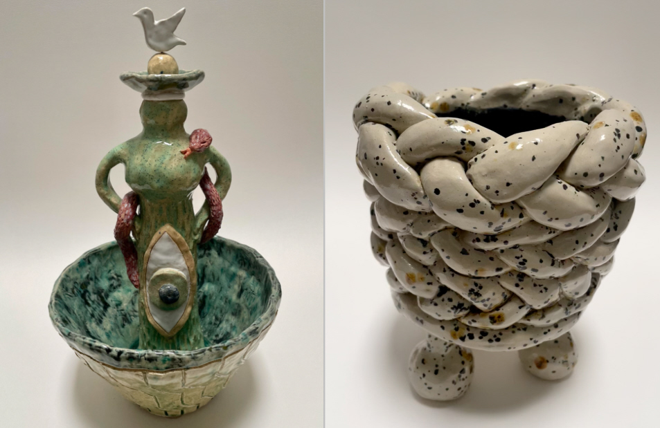 - Jeg udstiller skulpturer lavet af glaseret ler eller stentøj, og tegningerne er tegnet med kul, tusch, kuglepen, farveblyant, akvarel og jod på papir af stor format, siger Caroline til Spanien i dag.