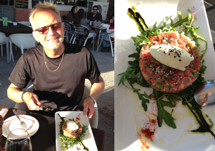 Min mand havde et ønske rent madmæssigt: at prøve den røde tun, der fanges i Gibraltarstrædet og som er højt skattet af mange - i særdeleshed af japanere. Han ville gerne prøve rå tuntartar med wasabi icecream.