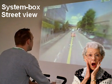 Som om det ikke var noget særligt, fortæller Kathrine, at hendes venindes mor har fået et motionscykel derhjemme, så hun via Googles Street View på tv-skærmen foran cyklen kan cykle rundt i de byer – eller landskaber – som hun ønsker. Hun kan endda også vælge allerede planlagte ruter af forskellig længde og sværhedsgrad...