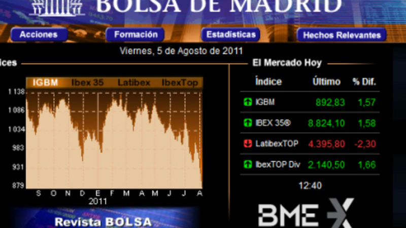 I går faldt IBEX35 med 3,89 procent på børsen i Madrid. I dag klokken 12:40 var indekset steget med 1,58 procent.
