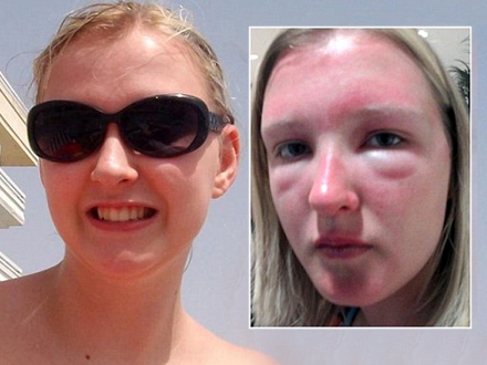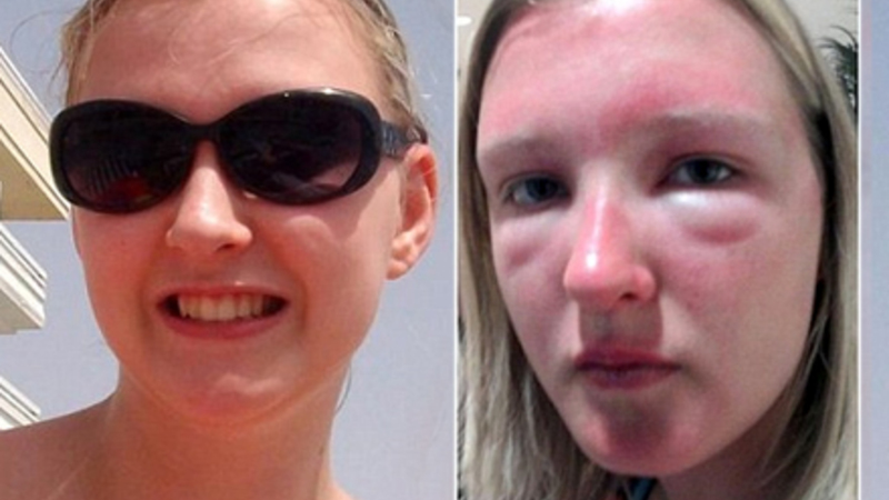 Ikke alle kan tåle de billige solbriller. Det måtte en britisk skolepige sande, da hendes ansigt svulmede op til dobbelt størrelse efter en slem allergisk reaktion på grund af et par billige solbriller.