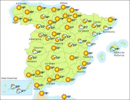 Solrigt og tørt de fleste steder, men i de nordvestlige egne og på De Kanariske Øer bliver det mere skyet, og der kan komme regn. Faldende temperaturer langs Middelhavskysterne, mens det bliver varmere i de sydvestlige egne.