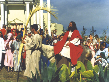 Scene fra palmesøndag - Jesus rider ind i Jerusalem