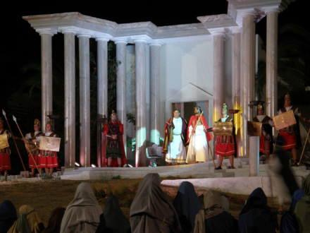 Scenen 'El Calvario' ligger på et højdedrag med to forhøjningen på hver side ud kanten af byen. Foran er der en rummelig esplanade, hvorfra publikum kan høre og se alt, hvad der foregår på scenen uden at skulle rejse sig fra deres stole.