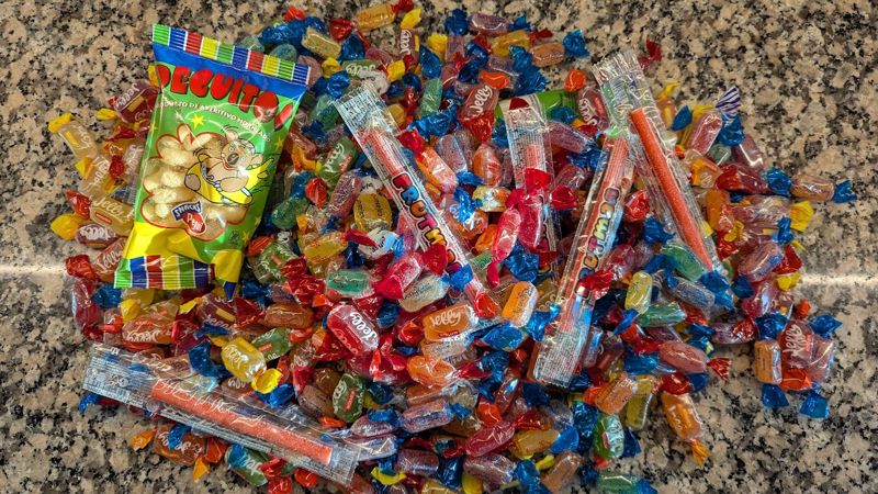 Det lykkedes Andrea at samle i alt 2,3 kg, karameller op fra fortove og vejbaner.