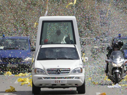 Hundredetusinde af jublende katolikker flokkedes langs veje og på broer, da paven kørte fra lufthavnen og ind til centrum, og hans ankomst mindede mest af alt om en rockstjernes triumftog.