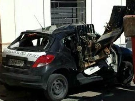 Bilen slap ikke pænt fra mandens vrede. Inkassatoren derimod slap med livet i behold, men er indlagt med hjernerystelse på sygehus i Castilla-La Mancha.