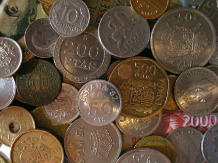 Der ligger pesetas-sedler for 863 millioner euro og mønter for 805 millioner rundt omkring i de spanske husholdninger.