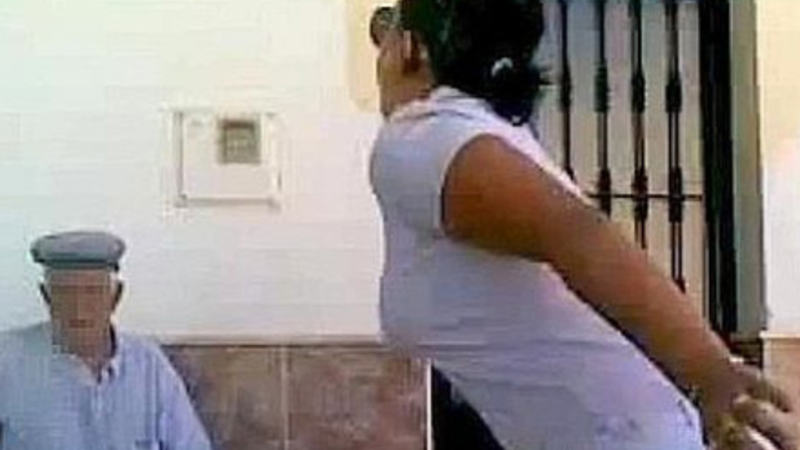 Det var, hvad to unge piger gjorde, da de den 25. juli lagde en video ud på internettet, der viste, hvordan de stod og spyttede på en ældre mand, som sad på en stol uden for sit hus i en gade i Santa Elena i Jaén-provinsen.