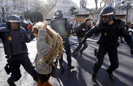 Lignende sammenstød fandt sted i Valencia i sidste uge under studenterdemonstrationer, som blot er en del af en række protester i hele Spanien mod regeringens besparelser, der blandt andet rammer skole- og sundhedsområdet.