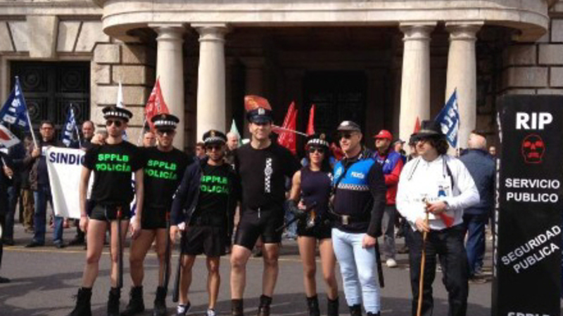 Omkring 200 lokalbetjente stillede sig op under balkonen på rådhuset i Valencia i boxershorts på et tidspunkt, hvor byen var fyldt med turister, der ville opleve Fallas-festivalen.