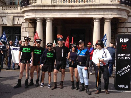Politibetjente smed tøjet og strippede ned til deres undertøj under en protest på grund af nedslidte uniformer og ældgamle køretøjer.