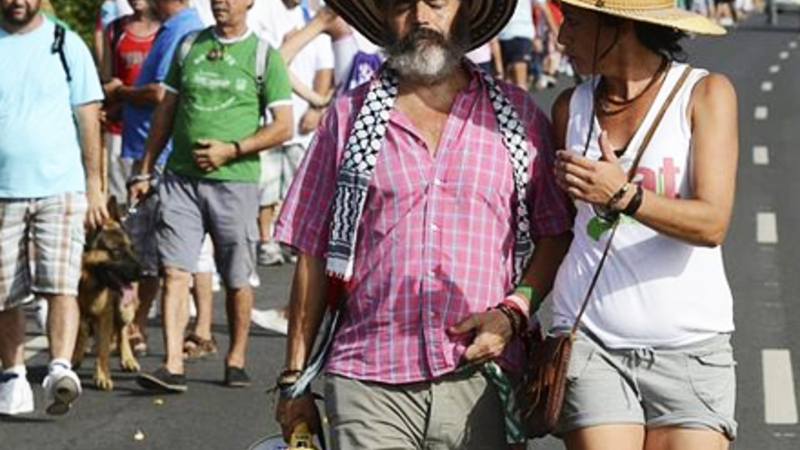 Anført af den efterhånden legendariske venstrefløjsaktivist, fagforeningsboss og borgmester i Marinaleda, Sanchez Gordillo, gennemfører fagforbundet i disse dage en række marcher i protest mod regeringens nedskæringer på de offentlige budgetter, mod dækning af bankernes milliardstore gæld med offentlige midler og mod lavt forrentede lån til mindre virksomheder – hvorimod de går ind for en minimumsløn på 1000 euro om måneden og jobskabelsesordninger for landets mange millioner arbejdsløse.