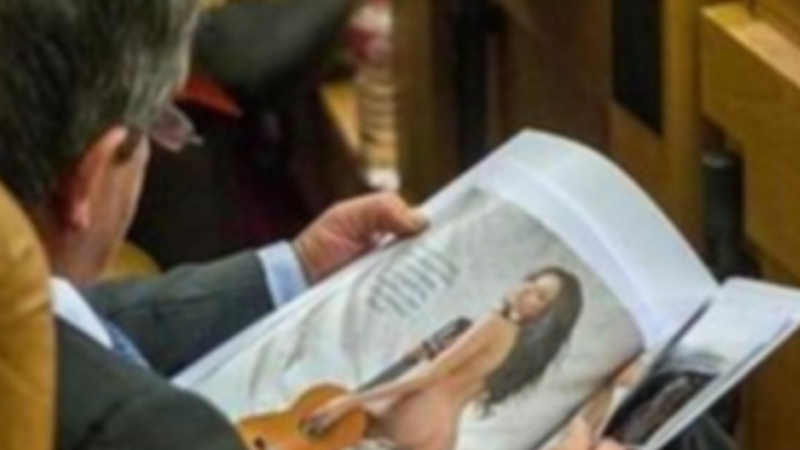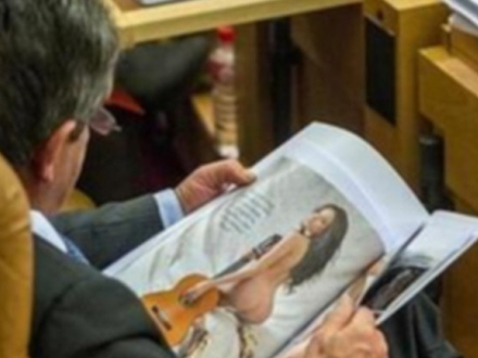 Midt i en session i Parlamentet sad lederen af Cantabrias lokale parti, Miguel Ángel Revilla, og kiggede billeder af nøgne kvinder i magasinet Intervíu.
