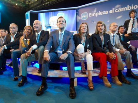 Blandt deltagerne på mødet, der finder sted i Kongres-hallen i Málaga, er partiets leder, Mariano Rajoy, og forhenværende ministerpræsident José Maria Aznar.