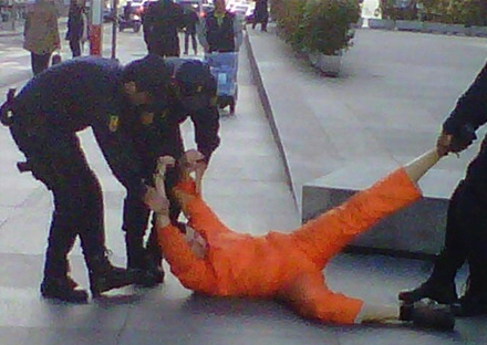 Aktivisterne ankom i en varevogn, der bremsede op lige udenfor Kongressen, som er under ombygning. Passagererne sprang ud, og begyndte at kravle op ad stilladset, indtil de nåede helt op på taget. Nogle af dem kravlede op på facaden af bygningen. En af dem nåede helt op på en afsats, hvor det lykkedes ham at folde et banner ud med skriften ”PP sælger vores kyst”, uden at politiet kunne gribe ind.