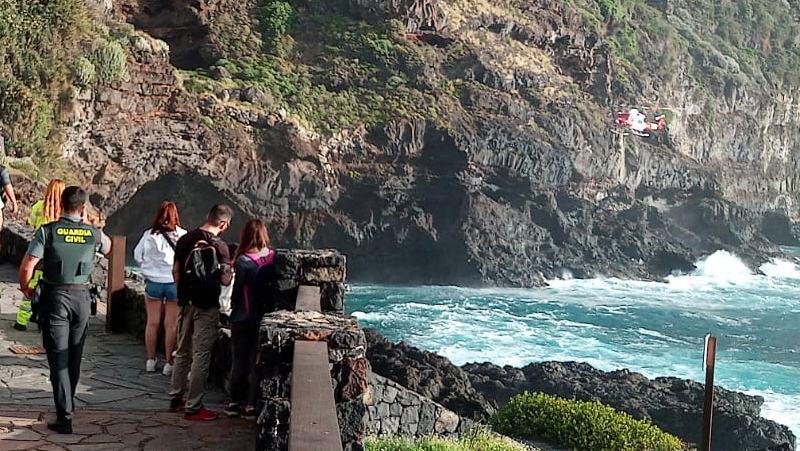 Stor redningsaktion er fortsat i gang på Tenerifes nordkyst, efter at to personer blev taget af de voldsomme bølger lørdag.