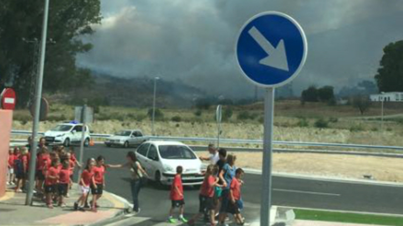Skolens 150 elever blev evakueret og trafikken på Carretera de Coín var en overgang spærret. Alle forældre opfordres til at hente deres børn straks.