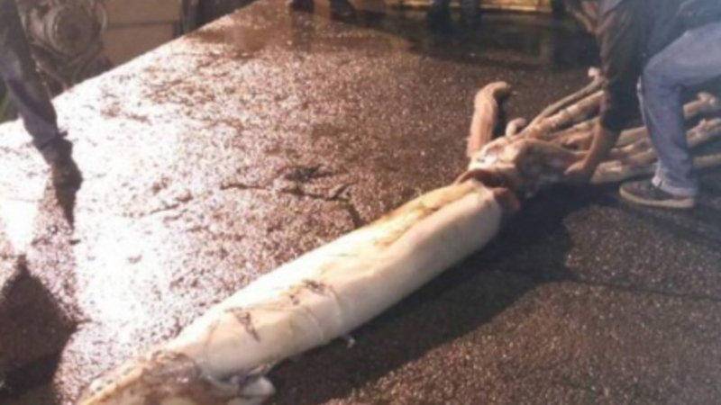 150 kilo fordelt på 10 meter. Det var noget af en blæksprutte, der gik i nettet i Asturien tirsdag.