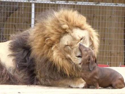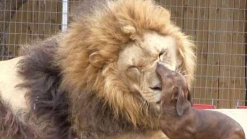 VIDEN, HYGGE & VIDEO: En handicappet løve, en handicappet dyrepasser og tre omsorgsfulde gravhunde.