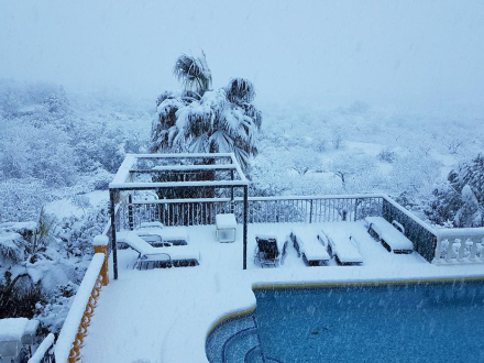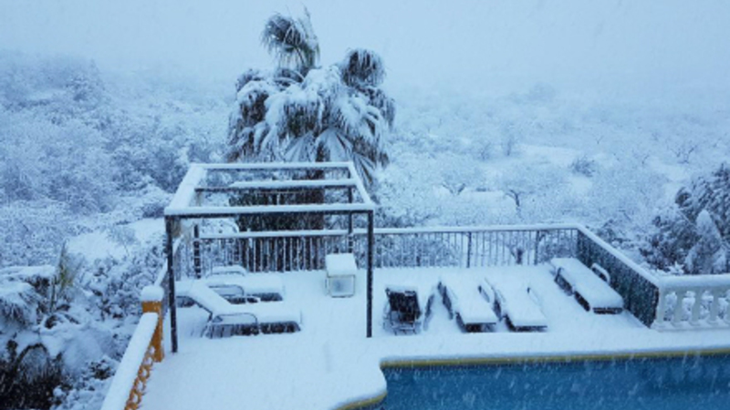 Monte Pego i Valencia er også pakket fint ind i vinter her til morgen (foto: Facebook)