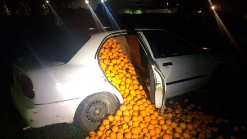 Senere finder de den tredje bil, som stadig er fyldt med appelsiner. Men frugt-tyvene er væk.