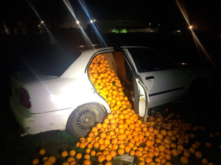 Politibetjentene konstaterer hurtigt, at der er en usædvanlig stor mængde appelsiner i bilerne.