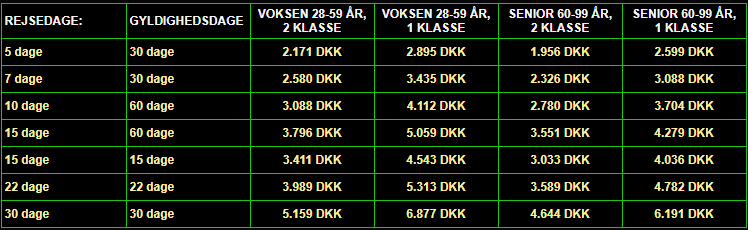Man kan helt selv skræddersy sin rejse og vælge eksempelvis 5, 7 eller 30 togrejsedage, som så bliver fordelt ud over flere dage. De fem, Ulla og Olaf valgte, har man 30 dage til at bruge, så man kan dele det op, som man ønsker.