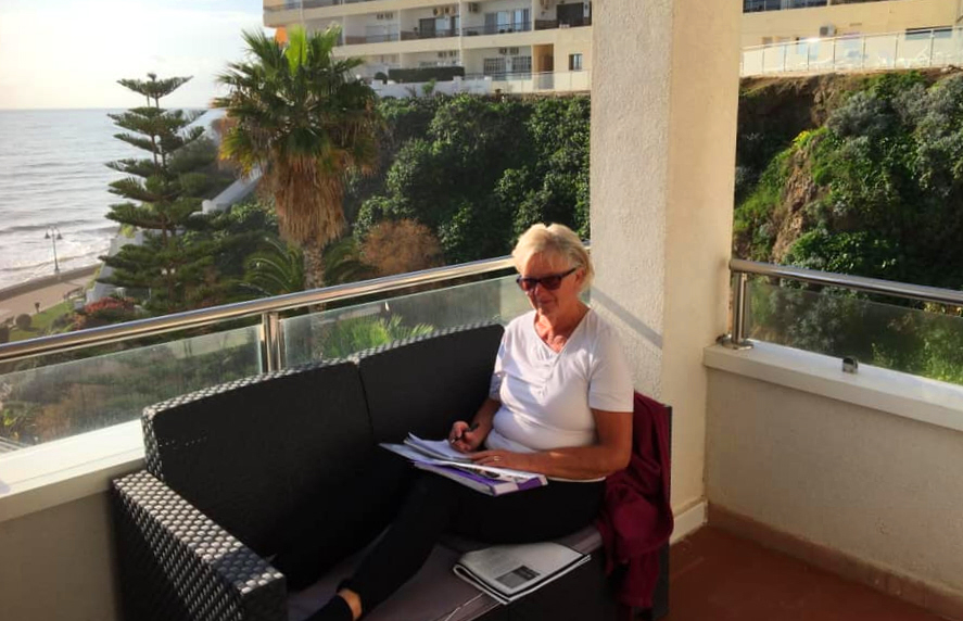 Sol og udsigt fra terrassen i lejligheden, hvorfra Ulla og Olaf nyder vinteren