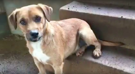 - Fitz blev fundet efterladt sammen med hans kun 6 uger gamle søskende ude på landet. De var i en rigtig dårlig tilstand. Men som man kan se på videoen, er han en glad og kærlig hund.